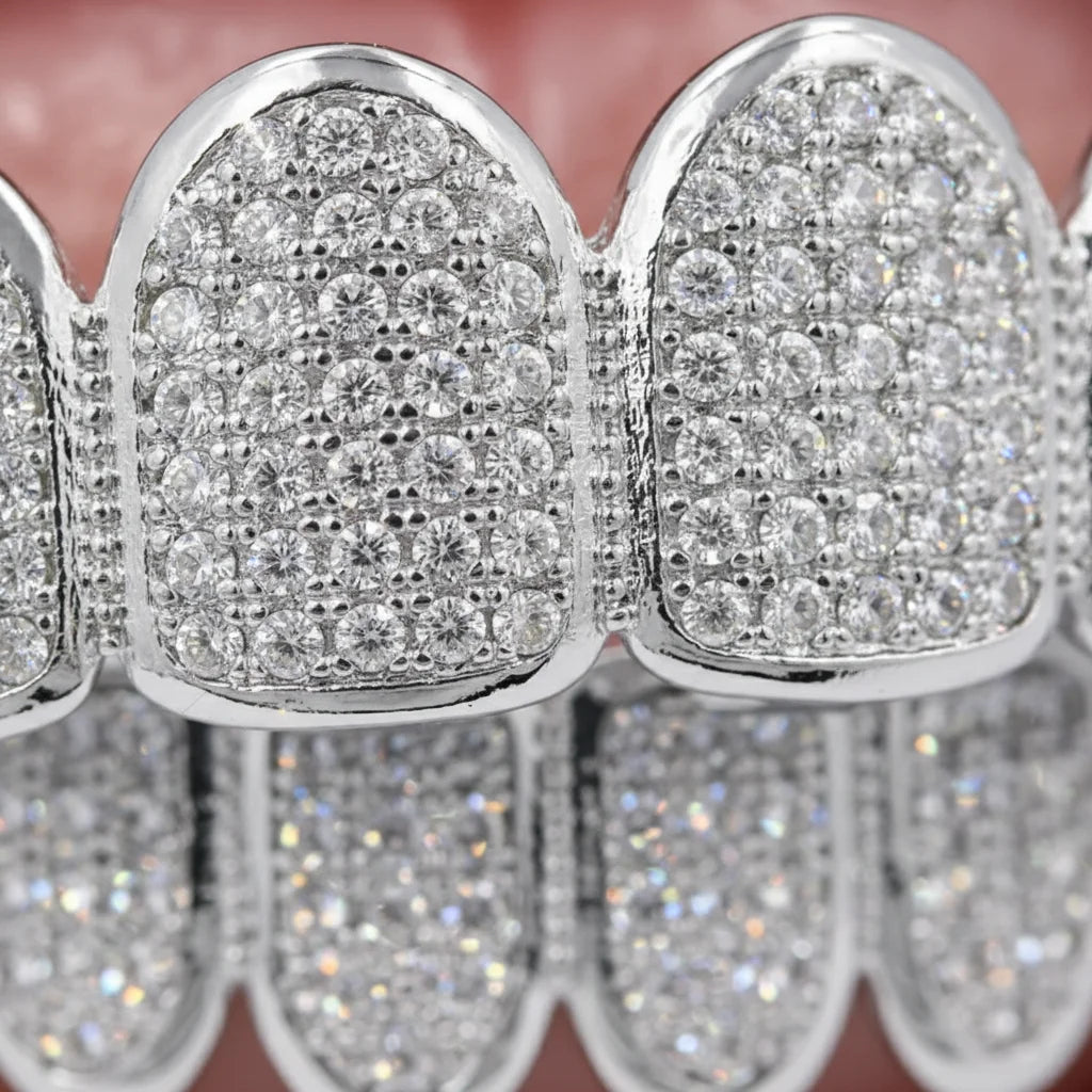 Crafted with shimmering CZ micro pave stones and silver plating, these grillz are engineered to catch every light. Just wear them and watch the compliments roll in!